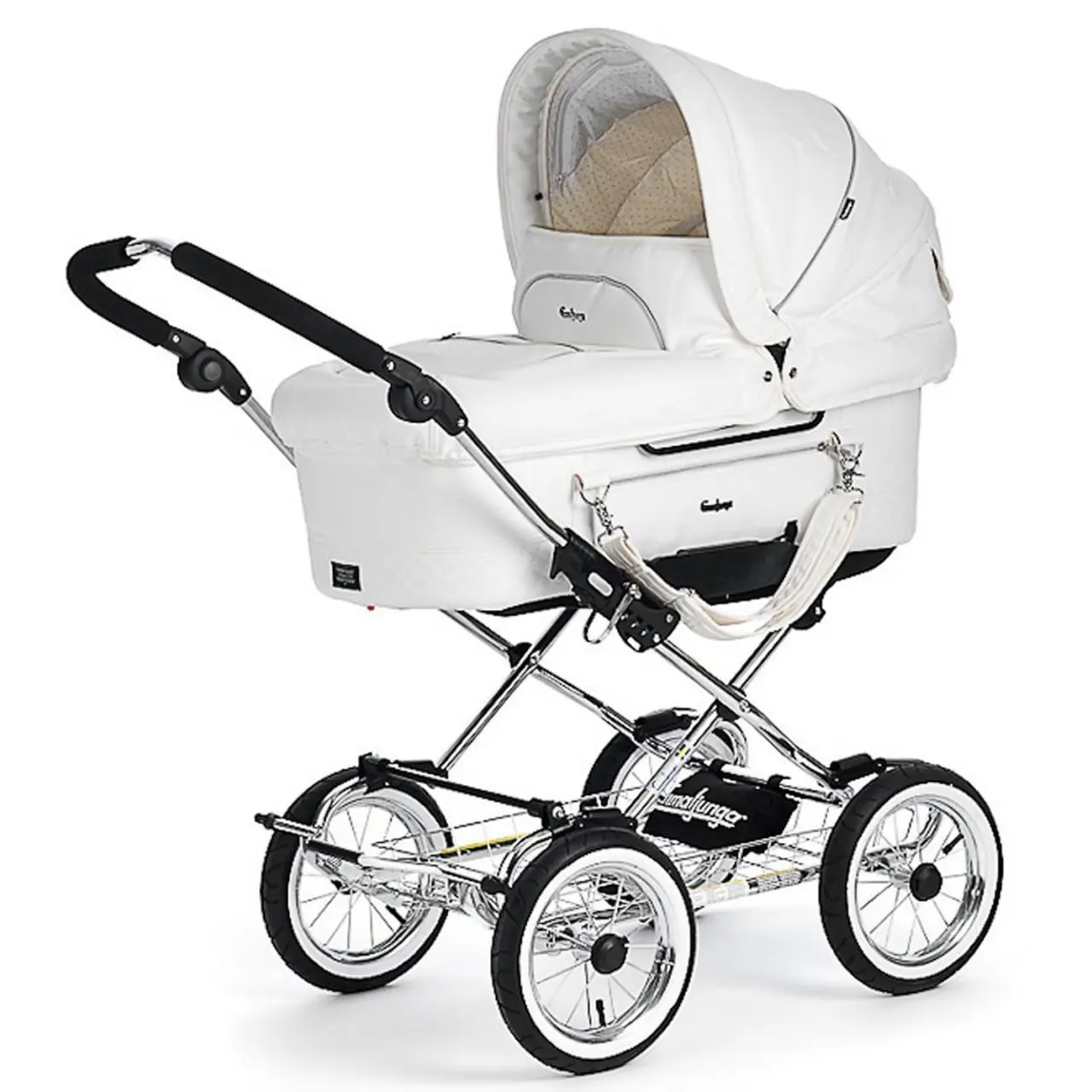 Kinderwagen EmmalJunga Mondial De Luxe - Classic White Leatherette Pram Package