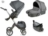 De stoel textiel set bestaat uit een zitkussen, een achter Textiel Cover, een harnas Protector, een Seat Rail Cover, een Canopy met kijkvenster, een Baby Pad, een boodschappentas, een Klamboe, en een regenhoes.