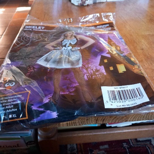 Halloween, skeletjurk compleet, nieuw in de verpakking