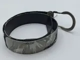 Riem van leer (binnenkant) en gebloemde stof (buitenkant).