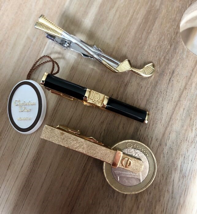 3) eenvoudige maar stijlvolle CD vergulde dasspeld. Gebruikte staat. 45mm.
