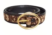 Christian Dior - bruin leren canvas Monogram Oblique-logo Riem met vergulde metalen gesp.
