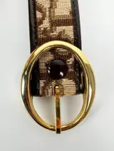 Deze riem heeft een buitenkant van bruin canvas met een all-over schuine Dior-logoprint. De binnenkant van de riem is van bruin leer. De canvas buitenkant is schoon en mooi zonder zichtbare gebruikssporen. Het materiaal is helder en schoon. Het interieur vertoont geen gebruikssporen. De riem sluit met een gespsluiting aan de voorzijde. Made in France