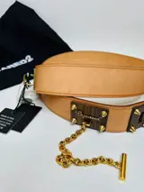 Introductie van de slanke en stijlvolle Dsquared2 leren riem, gemaakt van hoogwaardige materialen voor een verfijnde look. Deze riem heeft een uniek ontwerp, een combinatie van hout en goudkleurige metalen accenten voor een vleugje luxe. De gladde leren band voegt een vleugje elegantie toe aan elke outfit, terwijl de gesp van hout en metaal voor een uitgesproken en moderne look zorgt.