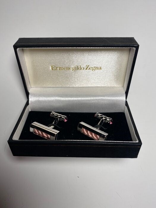 Mooi paar Ermenegildo Zegna manchetknopen in hun originele doos (lichte gebruikssporen op de doos), nieuwstaat.
