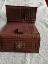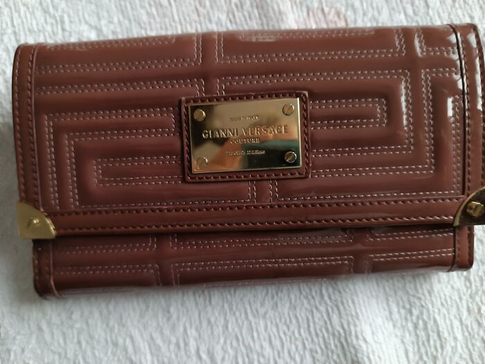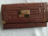 Burgundy Versace Couture damesportemonnee met gouden inzetstukken.