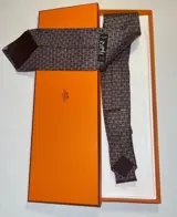 HERMÈS - Mooie zijden stropdas, elegant monogrammotief in een donkere en zeer formele toon, meet 9 cm x 150 cm - het is een product als nieuw in de doos. Aan u het genoegen van een aanbieding.