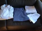 Kok / bakkerskleding - - 5,- per stuk - 1 x buizen, Sanifor , maat 48 - 1 x broek, maat 49 - 2 x sloof - 3,- per stuk - 3 x halsdoek - diensterschortje