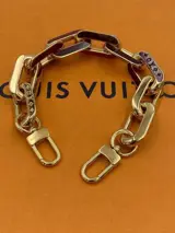 Louis Vuitton kettingschouderband van goudkleurig metaal. Uitstekende algemene staat, als nieuw. Materiaal: metaal. Hoofdkleur: goud. Orchid kleurdetail op sommige ringen. Totale lengte (inclusief haken): ca. 36,5 cm. Afkomstig van het Coussin BB orchidée model (M59396). Het past zich aan elke tas of ander model aan. GEEN DOOS. NB Alleen de schouderband is te koop, de tas is niet te koop.