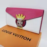 Louis Vuitton portemonnee, Louis Vuitton Pivoine Epi lederen Tribal Sarah portemonnee. Binnenvak met ritssluiting voor kleingeld, 3 binnenvakken voor biljetten, 12 sleuven voor pasjes, aan de voorzijde 2 zijvakken en aan de achterzijde een open ;ongvak.