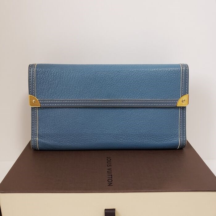 Deze authentieke Louis Vuitton Suhali Porte Tressor portemonnee is prachtig. Het heeft de kenmerkende buitenkant van LV Suhali blauw leer. Opent naar 2 lange compartimenten, 4 sleuven voor creditcards en een muntvak met drukknoopsluiting.