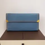 Deze portemonnee is in goede gebruikte staat. Het Suhali-leer aan de buitenkant is in goede staat zonder vlekken maar vertoont enkele deuken. De lederen binnenvoering ziet er over het algemeen netjes uit, maar heeft wat lichte gebruikssporen, evenals het muntvak. De randen en hoeken zijn mooi en alle stiksels zijn intact. Deze portemonnee heeft geen onaangename geur. Deze portemonnee wordt geleverd met een doos maar zonder dustbag. Zie de foto's voor meer details.