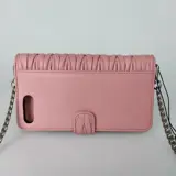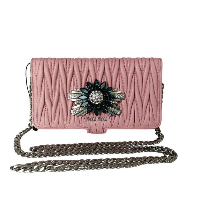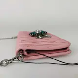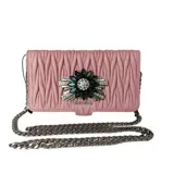 EIGENSCHAPPEN: Roze matelassé leer - Sieradenapplicatie aan de voorkant in metaal en groene en witte strass - Afneembare schouderriem - Inclusief doos en authenticiteitskaart