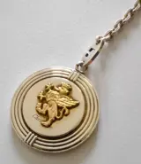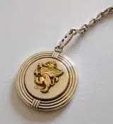 Christofle verzilverd en echt gouden 18 kt (750) sleutelhanger ongeveer 2 en een halve gram goud (het gouden wapenschild dat in de sleutelhanger gepresenteerd wordt is een griffioen) gemaakt ter ere van het symposium plastische en reconstructieve chirurgie in Umbrië (Perugia )