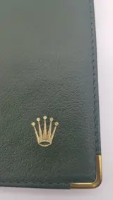 Nieuwe portemonnee, nooit gebruikt, merk Rolex, in echt donkergroen leer. Het heeft verschillende vakken voor creditcards en bankbiljetten.