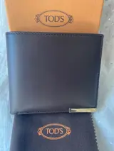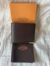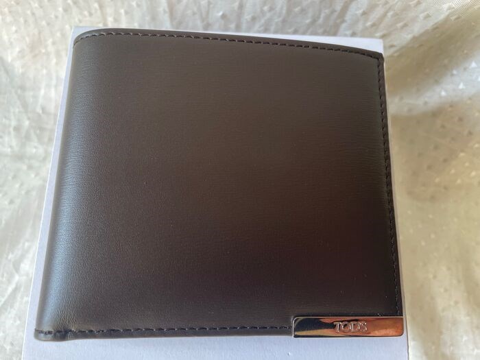 Tod's portemonnee van fijn en zacht bruin leer met metalen staven, met de originele doos.