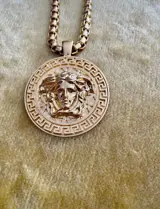 "Versace Made In Italy" gegraveerd op de achterkant van de Medusa.
