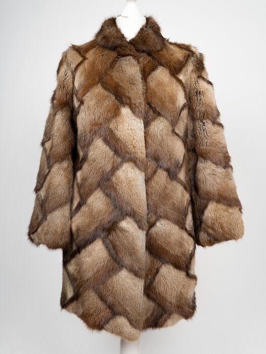 Korte bisam bontjas in maat ca. M. Controleer de afmetingen hieronder.
