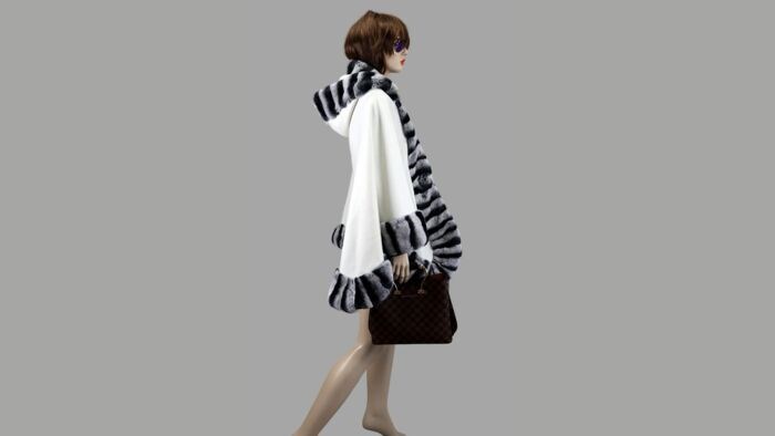 Mooie Chinchilla Rex kasjmier/wollen cape met grote capuchon in wit