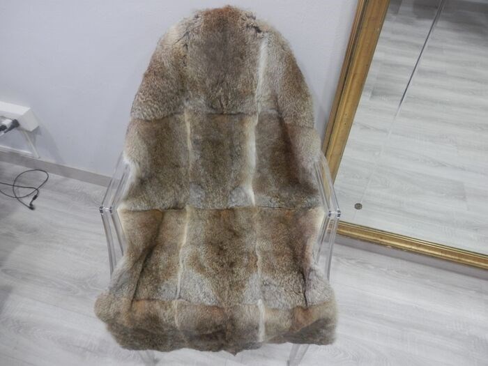 Splinternieuwe beige franse lapin stof, geschikt als vloerkleed, sierobject of om bontobjecten van te maken. Verzending met tracking via UPS