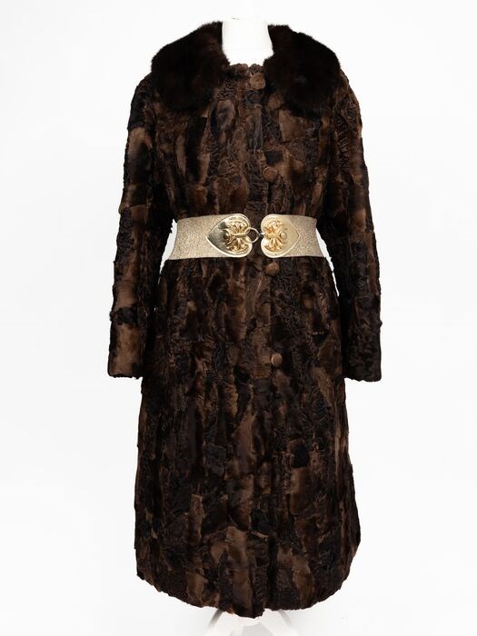 Prachtige vintage lamsleren jas met nertskraag maat ca. XL.