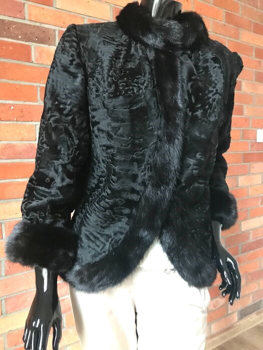 Jas gemaakt van jonge lammetjes. Mooie vachtstructuur. Afgewerkt met nerts in de kleur van intens zwart.