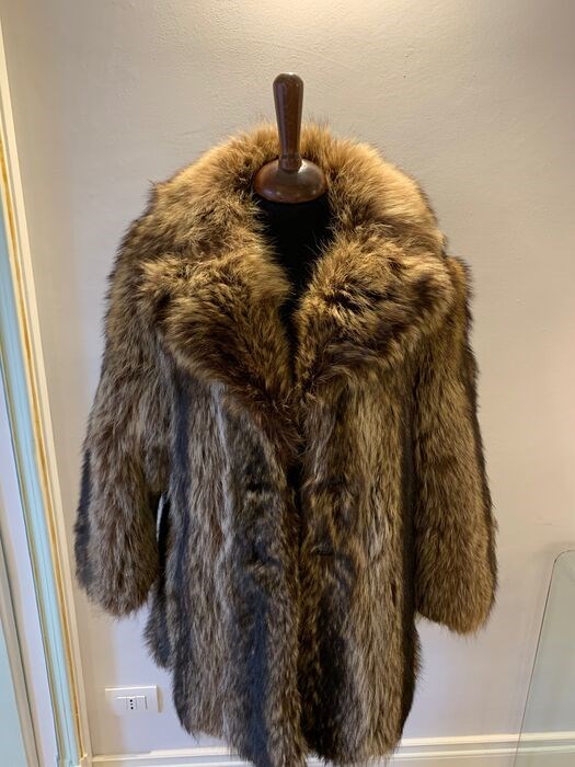 Jas van naturel marmot met reverskraag, iets geheiligd aan de zijkanten.