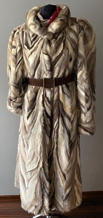 De vacht is in zeer goede staat. Bont gemaakt van nerts. Geen zichtbare gebruikssporen. Geen schade. Vastgemaakt met haken. De vacht heeft zakken. Totale lengte 116 cm. Borstomtrek 118 cm. Tailleomtrek 124 cm, heupomtrek 128 cm. Mouwlengte 65 cm, manchetten kun je oprollen. Het heeft geen riem. Het geveilde item wordt na betaling binnen twee werkdagen verzekerd verzonden. Ik ben niet verantwoordelijk voor onjuist afleveradres en levertijden.