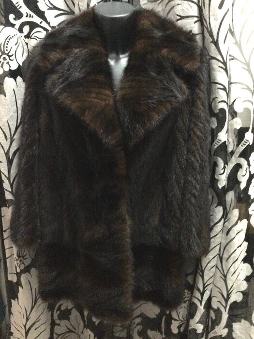 Kostbare donkere nertsjas, bewerkt in een visgraatpatroon. Huidig model, als een jas, rechtlijnig en zeer dik. Mooie geperforeerde kleur. Satijn interieur, uitstekende staat. Handgemaakt artikel van Italiaans bont van hoge kwaliteit. Maat L, va perfect voor een Italiaan 46 #bont #nerts #bont #nerts
