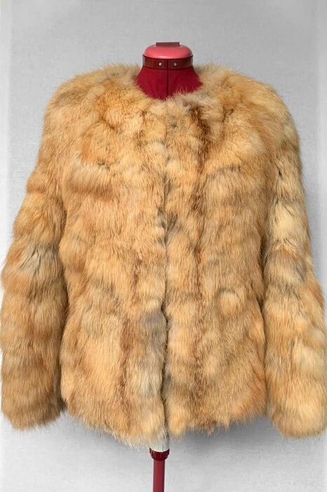 Mooie korte bontjas uit vossenbont met ronde kraag