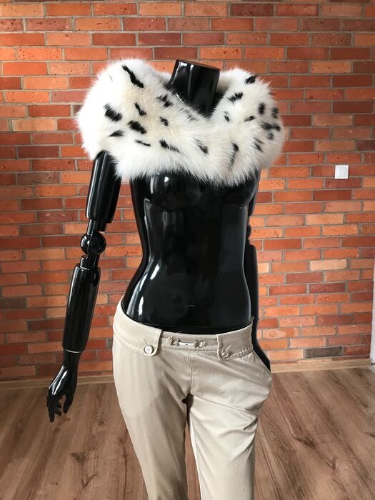 Natuurlijke stola, poolvossensjaal met zwart element.