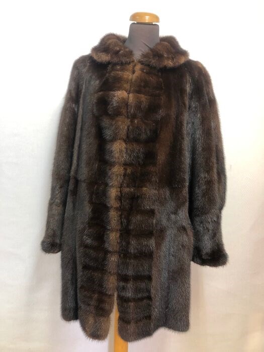 nertsjas van hele huiden! je kunt hem aan beide kanten dragen. de ene kant is van nertsbont en de andere van leer! Het heeft een bruine kleur.
