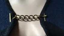 Burberry London marineblauw-zwart geruite deken-cape gemaakt van een mix van kasjmier en wol met oud-goudkleurige gespketting op de borst.