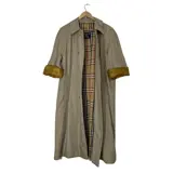 Burberry Vintage unisex beige trenchcoat. Het heeft schildpad knopen. De voering is van vintage ruiten, de traditionele ruiten van het merk (novacheck) en de mouwen zijn van goudkleurig satijn. Het heeft twee zakken waar je je handen in kunt stoppen. Maat XL. Hij is in perfecte staat, maar aangezien de trenchcoat vintage is uit de jaren 90 en geschiedenis heeft, kan hij door het verstrijken van de tijd wat vlekken of gebruikssporen hebben, maar die zijn niet erg zichtbaar.
