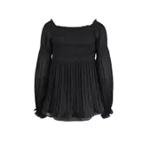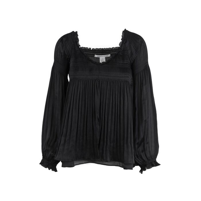 Diane von Furstemberg zwarte blouse. Ontworpen met een boothals en lange pofmouwen.