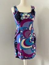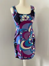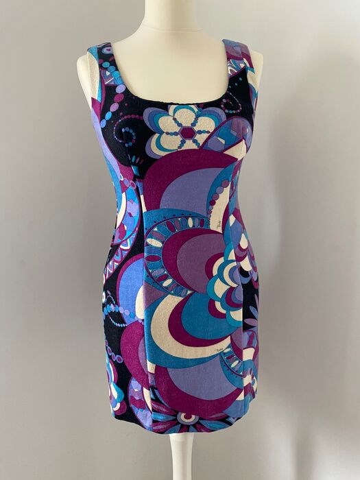 Emilio Pucci's nalatenschap is er een van caleidoscopische prints en wervelende heldere kleurstellingen. Deze jurk is gemaakt van scheerwol met een zijhaak en ritssluiting. De authentieke Pucci-stof draagt de discrete 'Emilio'-signatuur.