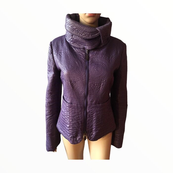 Sublieme Emporio Armani jas in paarse polyamide in perfecte staat, zo goed als nieuw. Sluit met de ritssluiting aan de voorkant, twee ritsen op de mouwen. De voering is van katoen.