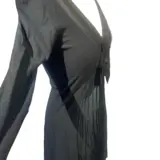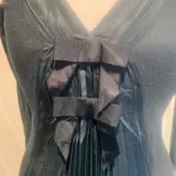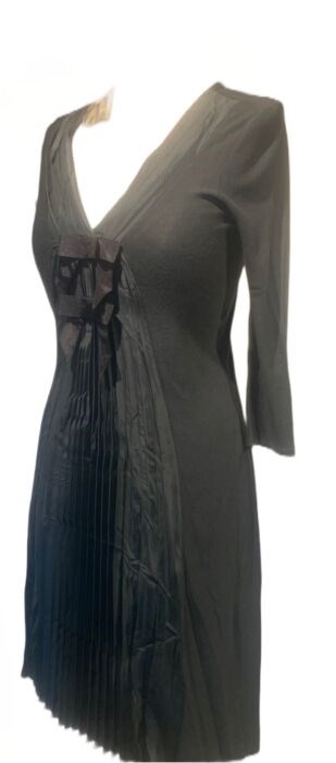 Mooie plissé voorkant met twee zwarte strikken. De jurk is licht en vloeiend.