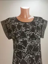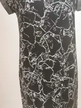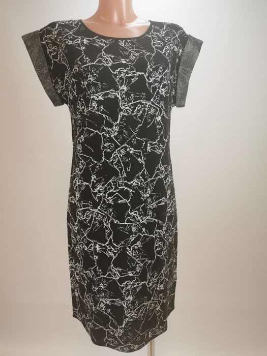 Zwart-witte gebreide jurk met een extravagante mouwoplossing