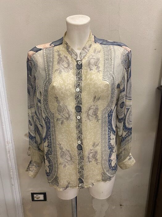 Puur zijden blouse van Etro in goede staat met wat ouderdomssporen Afmetingen: 50 x 38 cm Verzending via nationale koerier en professionele verpakking.