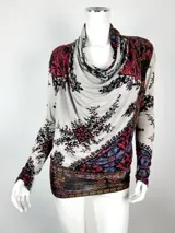 Stijlvol is deze top met een prachtige print op lichtgrijze achtergrond.