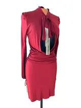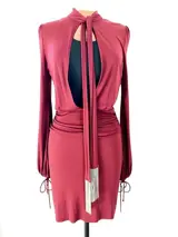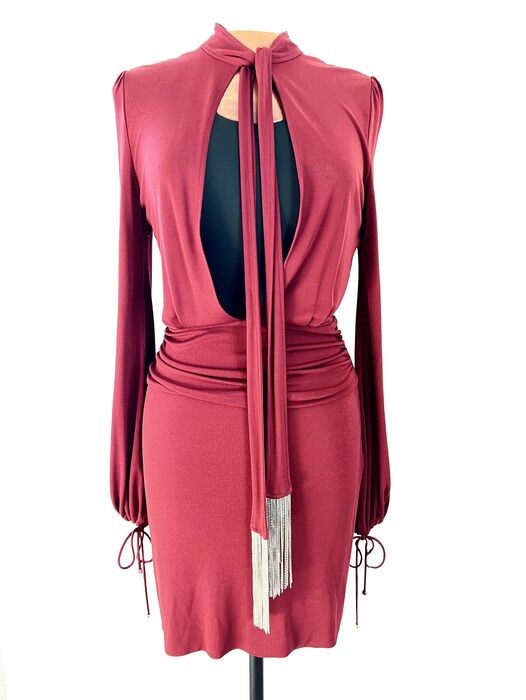 Iconische Gucci-jurk, supersexy, strak om het lichaam met diep decolleté om rond de nek te knopen.