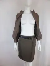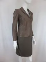 Exclusief pak, jasje en rok met leren riem en metalen gesp.