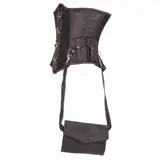 Donkerbruin underbust steampunk echt leren korset met stevige buigzame baleinen voor een strakke pasvorm, heeft 4 gouden swinghooks aan de voorkant en stevige lange rijgveter aan de achterkant.