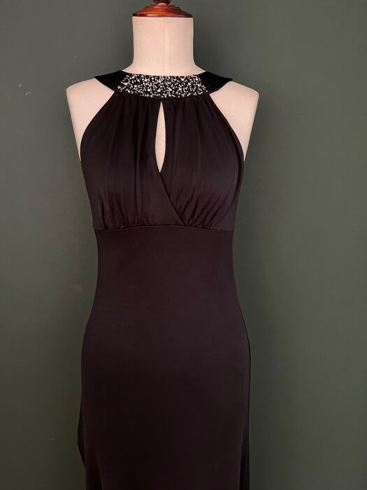 Prachtige, elegante, zwarte jurk van het merk Louis Féraud! Een echte blikvanger!
