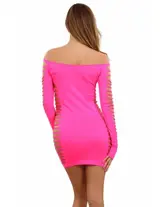 Benadruk je rondingen met deze ultra-sexy jurk met een gedurfd ontwerp. Gemaakt van stretch, sluit het perfect aan bij het figuur en biedt het optimale comfort. Het openwerk aan de zijkanten, mouwen en borst creëert een onweerstaanbaar sensueel effect. De halslijn onthult subtiel de schouders voor een extra vleugje glamour. De jurk een absolute aanrader voor wie zijn sensualiteit durft te tonen.