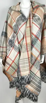 Schitterend is deze meerkleurige, geruite cape met een kap, waarvan de schoonheidzichtbaar is op de foto's.