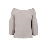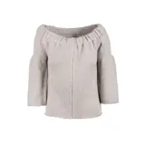 Miu Miu beige wollen trui. Korte pasvorm, lange mouwen, boothals en centrale ritssluiting.