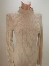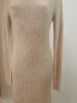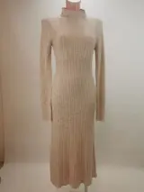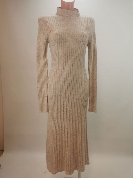 Klassieke gebreide jurk in gemêleerd beige