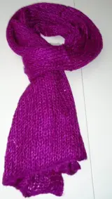 Sjaal is grof gebreid.